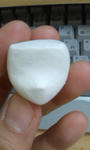 足下にいろいろ転がってるけどきにしない。 そしてどこまで気力が持続するか分からないので完成の日は遠い。 後、結構前にダイソー石粉ねんどを購入し、なんか丸めてパソモニター付近に放置する事数ヶ月経ったのですがやっと刃を向ける気になった。 結果、ただの球体だった粘土の塊がとりあえずこんな形になりました。 でも実は…何を作ろうか全く考えていません。 ので最悪ここで終了の恐れが…。 いつか何かになったらいいな、と思う。 |