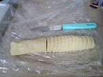 参考ページ↓ http://mixi.jp/view_bbs.pl?id=35031927&comm_id=107818 本日休みなので9時半に起床。 妹が使い残した強力粉119gを頂き、台所にある砂糖とサラダ油を少々頂き混ぜ開始。 ラップで包み冷凍庫に突っ込んでお出掛けしました。 で、帰宅後wktkしながらブツを取り出しラップを外してみると… どう見ても沢庵です本当にありがとうございました この皺っぷりとか長さとかもうほんとそっくりじゃないですか? 結構白っぽく写ってるけど実際はもう少し黄色いかな? 丁度二階から下りてきた母上や焼いてる最中に帰宅した父上にキャッキャしながらこの写真を見せたよ。 そして焼き上がって取り出してみると… …アイスボックスクッキーってこんなに白いものなのか。 なんか焼けてるのかどうか不安だったのでもう5分オーブンかけた。 右下の残骸は本当に焼けたの?と楊枝を刺された挙句解体され割り箸で突付いて毒見した名残です。 ------------------------------------------------------- しばらく冷ましたので食べてみたら…さくさく軽いクッキーになった!!! 普通に美味しいですww |