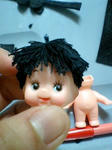 目はしっかり縁取ってあった部分を一部消し白部分を増量。 修正後の方が好みの目元になりました。 微笑んでるあの口はどうにもイメージとかけ離れるので紙ヤスリでガリガリ削って削って… 離れて見る分には結構可愛らしくなってきたと思うのですがどうだろう? 頬を赤らめてるイメージが強かったけどぼかした赤みが描けなかったので諦めてねんどろハルヒみたいな感じで妥協。 しかし近くで見ると削った部分がざらざらそうなのがよく分る… 19日お休みなのでもう一体日本の子を購入して整形具合を並べてみようかと思います。 ついでにQPも買ってきてなんか改造してみたいなぁ。色黒の子も居る事だしハボキとかトトとか作ってみたい。 妹もQP改造して誰か作るみたいなので楽しみ。アイツ5匹もQP購入希望してきやがった。やる気満々だなおいw |